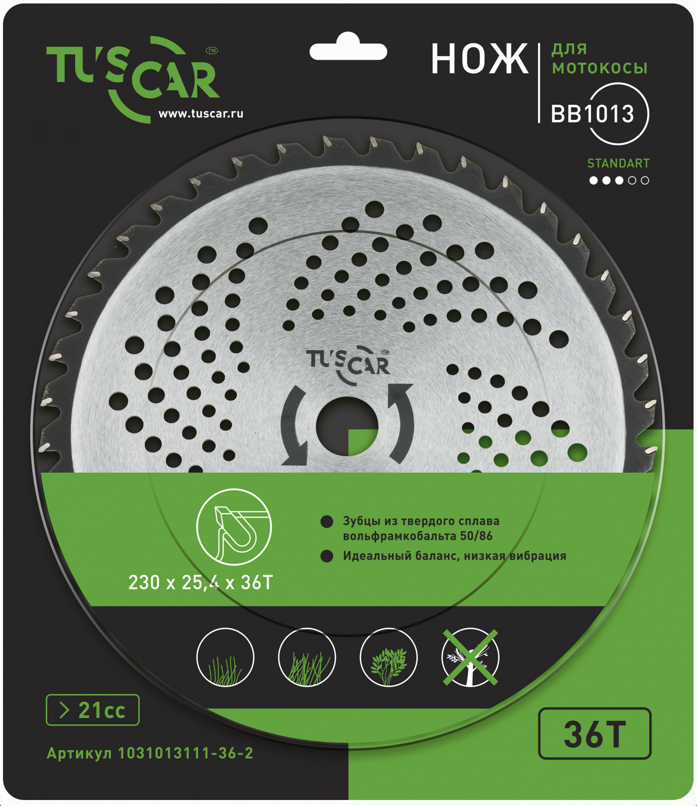 - Нож для мотокосы TUSCAR BB1013, Standart, 230x25,4x36T, Classic