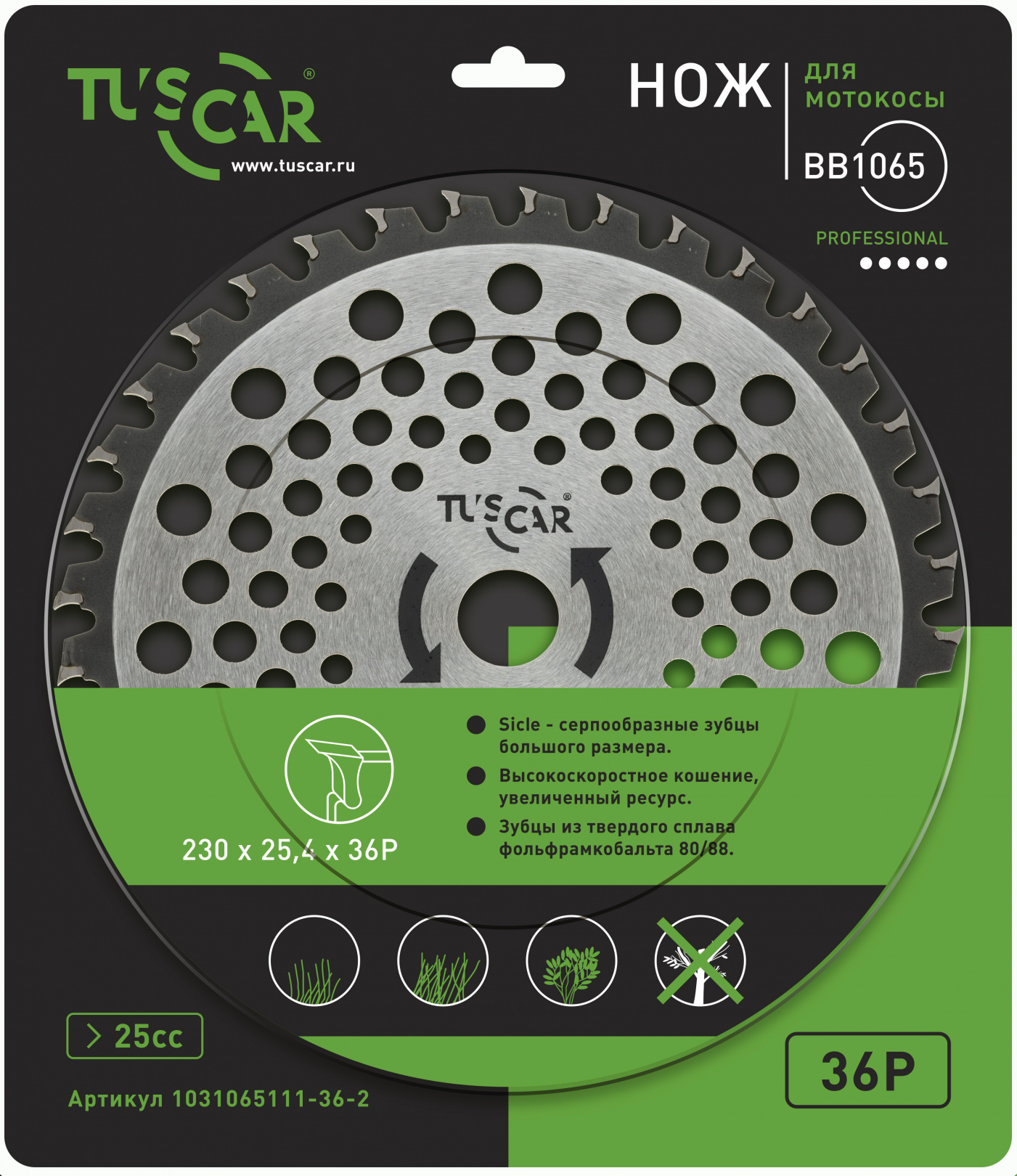 - Нож для мотокосы TUSCAR BB1065, Professional, 230x25,4x36T, Sickle