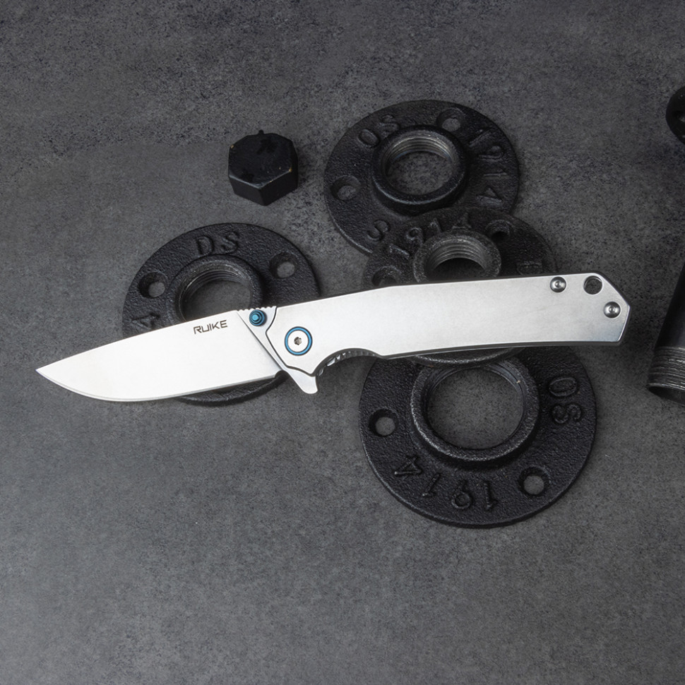 Ruike P801 – удобный складной нож, который можно использовать в городе или на природе. Он довольно компактный: длина составляет 114 мм, а масса – всего 120 грамм. Его удобно переносить, ведь на ручке есть ещё специальный зажим для крепления на карман, ремень или другую одежду. Дизайн минималистичный, но при этом нож очень стильный. За закрытие и надёжное удержание клинка отвечает механизм типа Frame Lock.